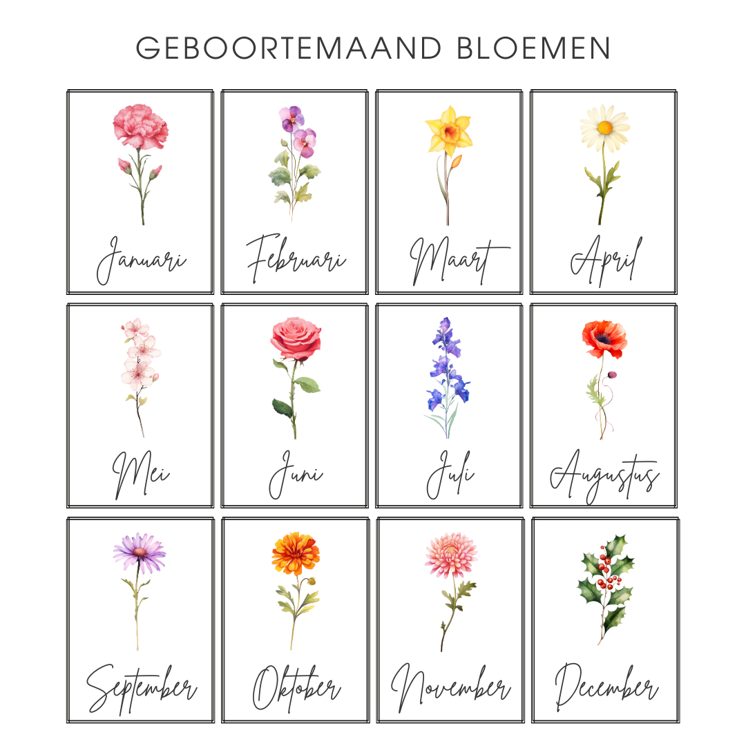 Geboortebloemen Poster of Digitaal | (Klein)kinderen, Vrienden & Familie